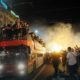 Jake snage policije zatvorile su saobraćaj u delu Autokomande, pošto je otvoren autobus sa fudbalerima Partizana, u pratnji navijača, otišao u centar...