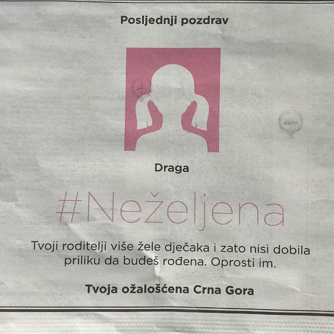 -Ovim putem vas obavještavamo da se u Crnoj Gori godišnje izvrši veliki broj selektivnih abortusa.