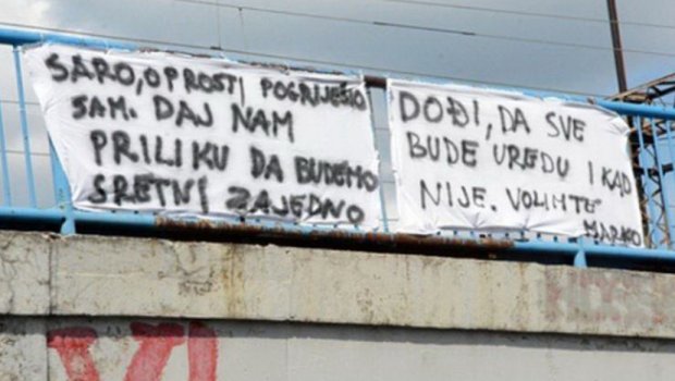 Na ogradi iznad nadvožnjaka u Slavonskom Brodu u Hrvatskoj osvanula je poruka jednog Marka koji za oproštaj moli svoju devojku Saru.