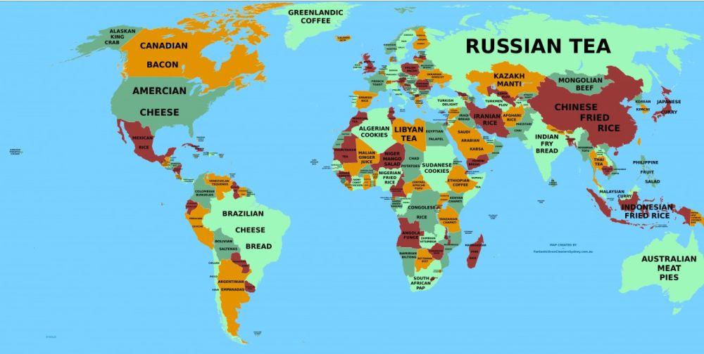 Na internetu je već nekoliko godina aktuelna kulinarska mapa sveta u kojoj je svaka zemlja obeležena jelom koje je u njoj najpopularnije. Rezultati su skupljeni na osnovu podataka iz Google search predloga, odnosno na osnovu prvog rezultata koji iskoči kad u pretraživaču ukucate “Omiljeno jelo u…”