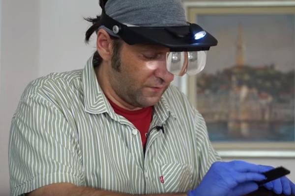 Goran nosi zaštitne patofne, rukavice, košulju, traku za kosu, te specijalne naočare s uveličavajućim staklom kako bi lakše tamanio gnjide.