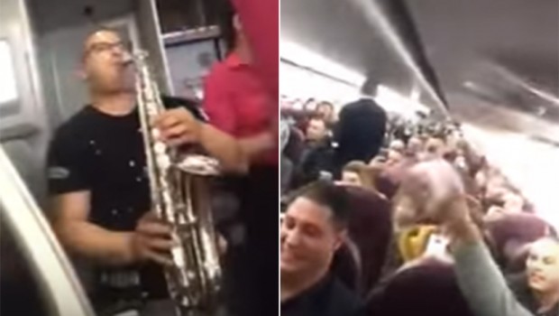 Da bi oraspoložio putnike i skinuo im tokom leta zabrinuti izraz sa lica, on je uzeo svoj saksofon i raspalio.