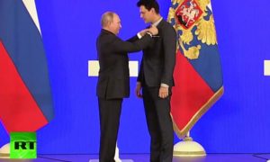 Predsednik Rusije Vladimir Putin uručio je srpskom glumcu Milošu Bikoviću rusku državnu nagradu Medalju Puškina. FOTO: PRINTSKRIN / YOUTUBE Biković se na...