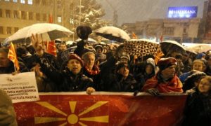 Demonstranti su se najpre okupili ispred misije Evropske unije u Skoplju, da bi odatle krenuli ka zdanju makedonskog parlamenta, gde se skup...