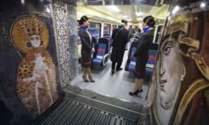 Tematski ukrašeni voz na kojem na 21 jeziku piše “Kosovo je Srbija” i čija je unutrašnjost ukrašena motivima kulturno-istorijske baštine Kosova i...