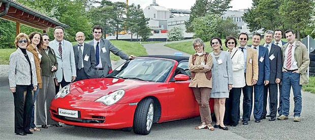 Tema je postala još aktuelnija kada su neke države Sjedinjenih američkih država propisale za ono vreme stroge zakone o zaštiti okoline. Porše je najviše izvozio u SAD, pa je morao da vozila prilagodi američkim zakonima. Krenula je potraga za stručnjacima koji su nešto znali o toj temi. Saradnik Poršea dr Karl Hajnc Lange je dobio zadatak da oformi grupu stručnjaka koji bi radili na razvoju savremenijih motora. Dr Lange i dr Gruden su se poznavali sa Minhenskog Univerziteta i već su sarađivali. Tako se Dušan Gruden 1.3.1973. obreo u nekada maloj fabrici poznatih sportskih automobila –Poršeu u Štutgartu na mestu rukovodioca grupe za osnovna istraživanja. Odlaskom dr Langea u BMV 1975. dr Dušan preuzima njegovo mesto rukovodioca odeljenja predrazvoja motora.
