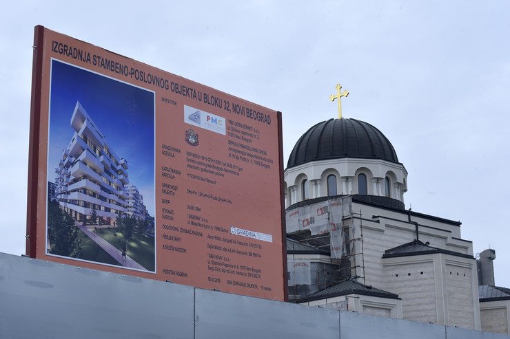 Građevinski radovi započeti su u martu u Bloku 32, preko puta “Merkatora”, odmah do Hrama Svetog Dimitrija. U gradskom Sekretarijat za urbanizam i građevinske poslove, koji je izdao građevinsku dozvolu SPC-u i beogradskoj firmi “PMC inženjering DOO” kao investitorima, potvrđuju da je vlasnik zemljišta na atraktivnoj lokaciji u Bulevaru Zorana Đinđića, koje je “okupirala” teška mehanizacija, SPC, odnosno Arhiepiskopija beogradsko-karlovačka.