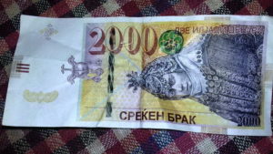 Svadba u jednom lokalu u unutrašnjosti Makedonije je bila bogovska, bakšiš je pljuštao sa svih strana, a kada su muzičari na kraju počeli da broje pazar, ostali su šokirani. Umesto pravog novca, dobili su gomilu bezvrednih fotokopiranih kolor novčanica od 2.000 denara, na kojima je u donjem delu pisalo “Srećan brak”.