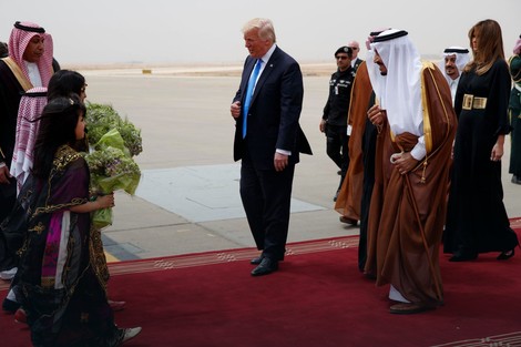 Gotovo identična situacija ponovila se u Rijadu. Izlazeći iz predsedničkog aviona, Tramp je mahnuo prisutnima i sišao niz stepenice da se pozdravi sa domaćinima. Melanija je ponovo ostala u drugom planu, iza njegovih, ali i iza leđa njihovih domaćina.